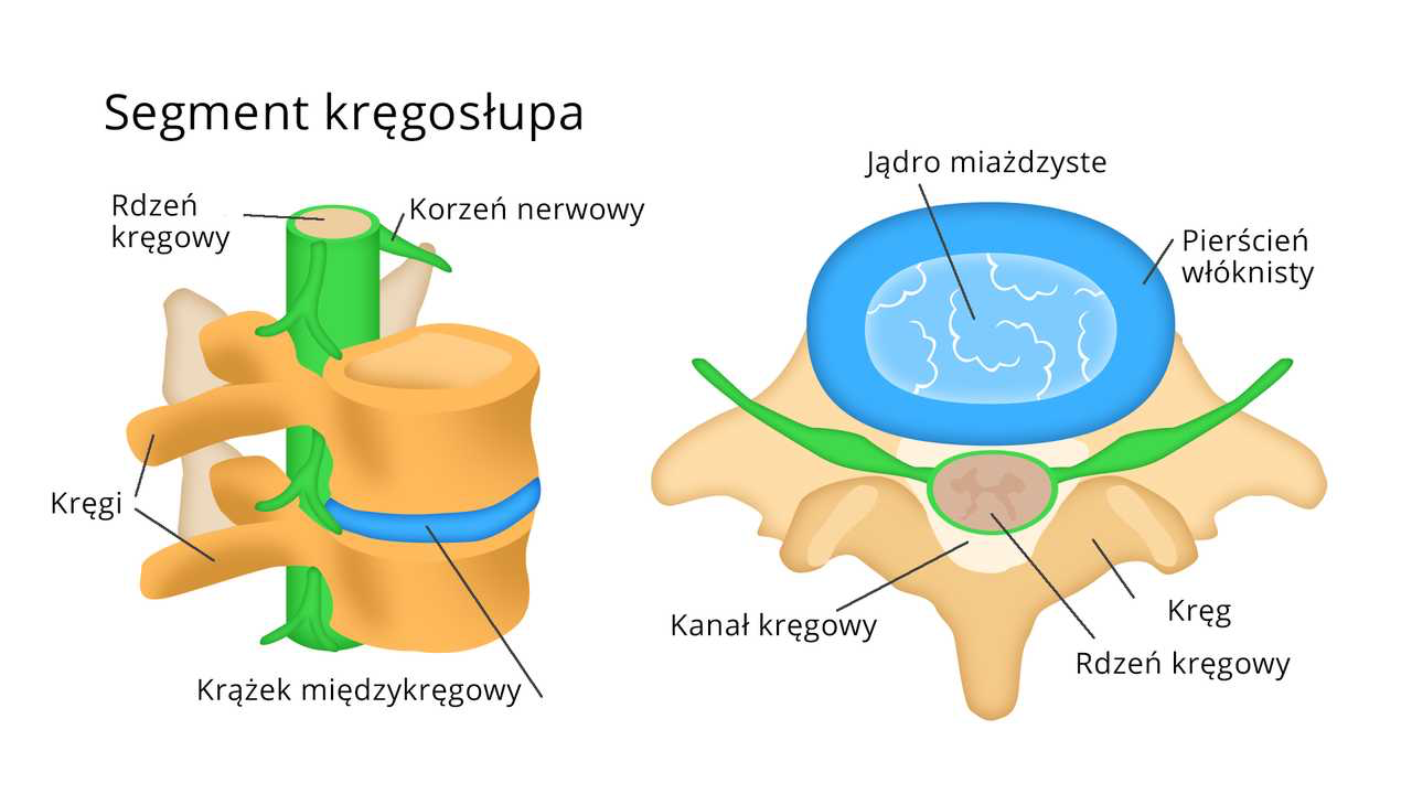 Pojedynczy segment to dwa kręgi w kręgosłupie sąsiadujące ze sobą, torebki stawowe i Krazek miedzykregowy (dysk)