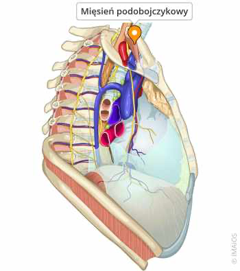 Mały wrzecionowaty mięsień położony między obojczykiem a 1 żebrem. Bocznie przyczepia się do dolnej powierzchni obojczyka, biegnie skośnie ku dołowi i przyśrodkowo gdzie przyczepia się do powierzchni górnej 1 żebra na granicy chrzęstno-kostnej.